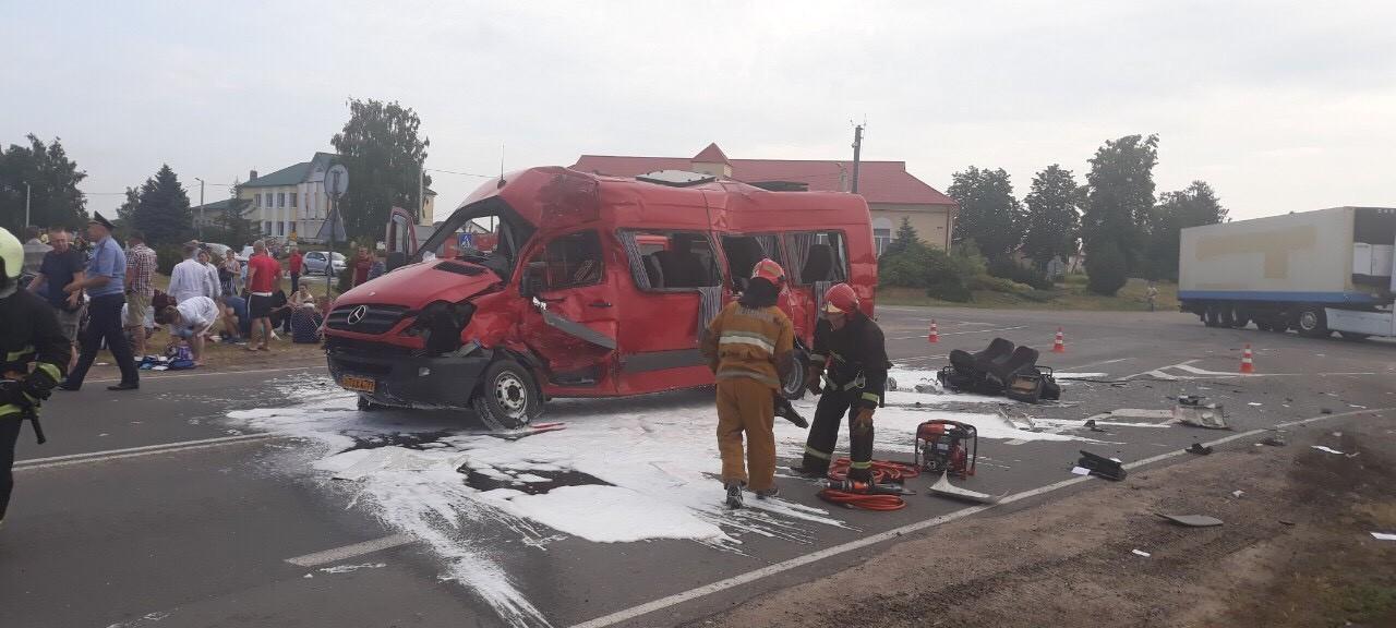 Напомним, утром 21 июня в Видомле произошла страшная авария. Фура влетела в маршрутку, ехавшую в Брест. В аварии пострадали 20 пассажиров и водитель буса. Одна из пострадавших умерла в операционной. По состоянию на 24 июня в больницах находятся 16 человек, из них 9 — в областной больнице в Бресте.