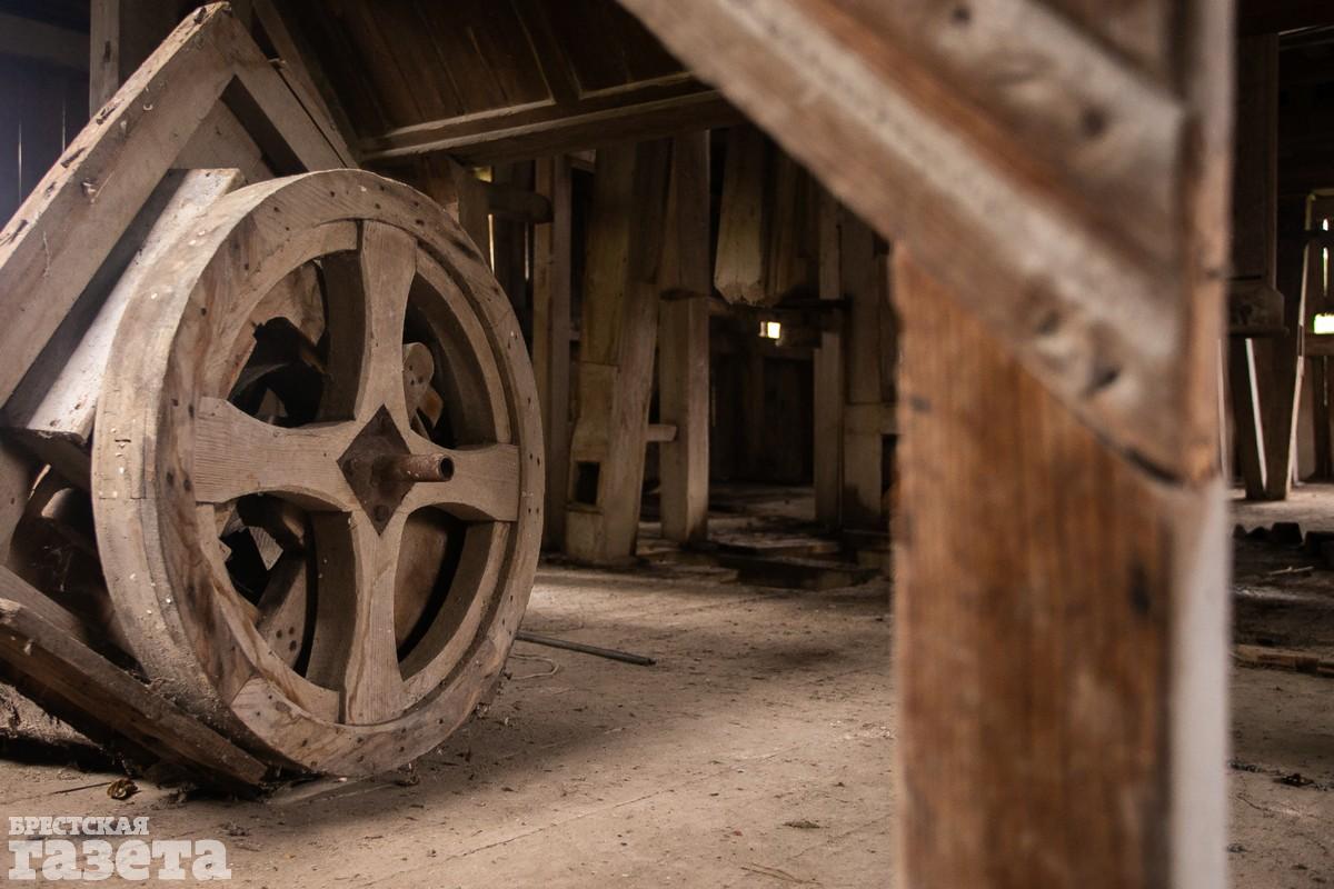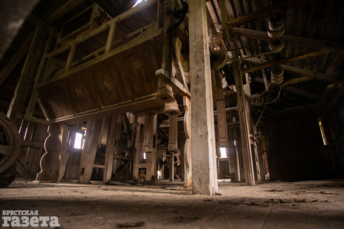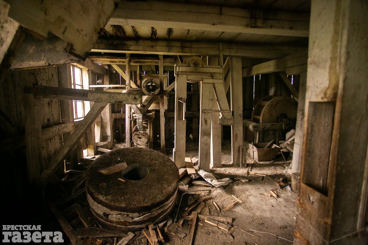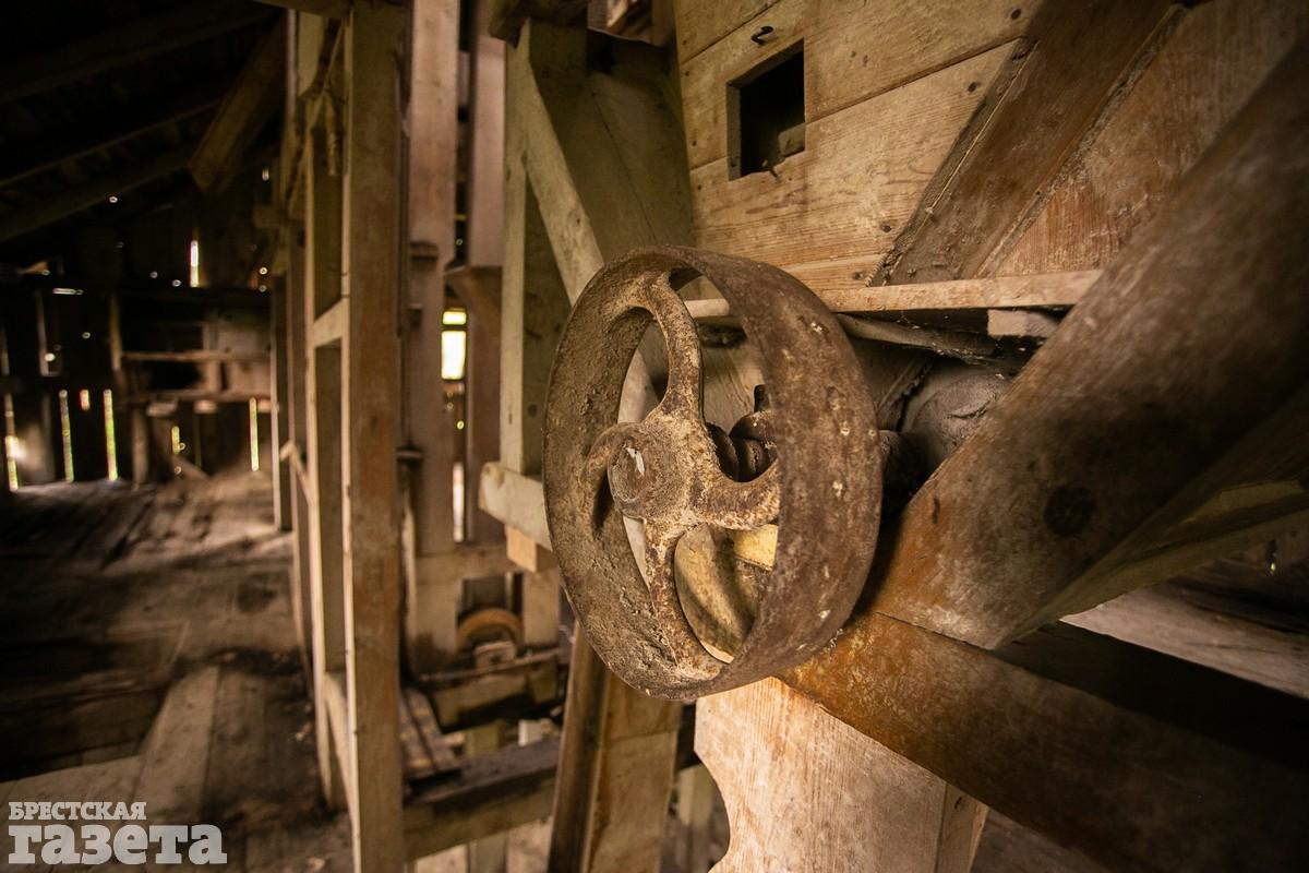 В мельнице мы провели около часа. Было интересно изучать ее внутреннее строение и пытаться разгадать принцип работы сложного механизма. Большая его часть сделана из дерева. Как и само здание. Увы, но во многих местах доски пола сильно прогнили. Ходить по ним опасно. Особенно на втором этаже. Мельница находится в плачевном состоянии, но если начать реставрационные работы сейчас, то можно восстановить этот уникальный объект в почти аутентичном виде. Однако ничего подобного в ближайшее время не планируется, у мельницы даже нет статуса историко-культурной ценности – занавес!