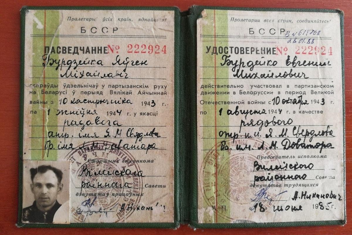 Евгений Бурдейко родился 2 февраля 1927 года в деревне Ивашиновичи Вилейского района Минской области в дворянской семье, рассказал корреспонденту «БГ» Владимир Кривченя. В 1936 году на побыв в их поместье попросился человек, представившийся Григорием. Он сказал, что он бездомный. В 1939-м он предупредил отца Евгения Михайловича, что грядут перемены и нужно распродавать имение и распускать дворовых. Пришли «красные». В конце 1940 года отца Евгения Михайловича расстреляли. Его мать умерла, когда он был совсем маленьким. Так он остался сиротой.
