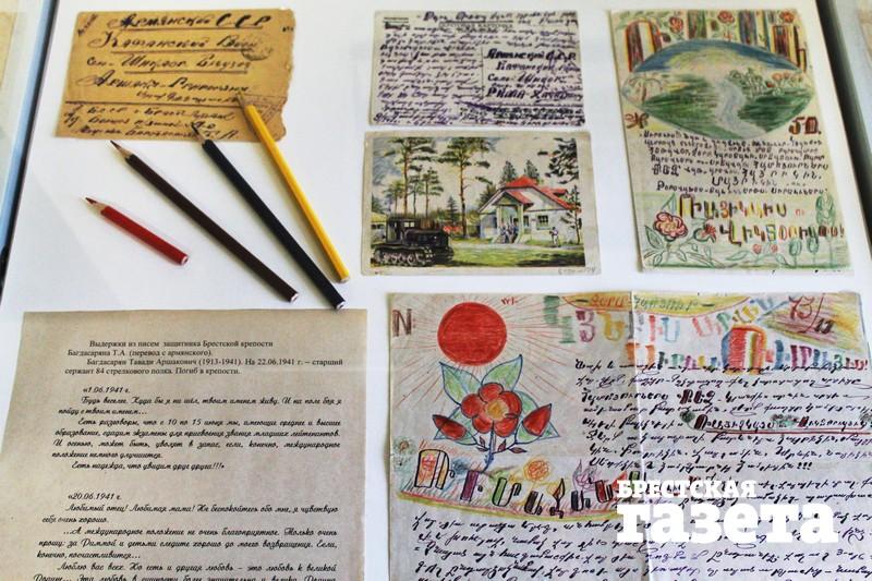 Обращают на себя внимания письма, которые писал старший сержант 84-го стрелкового полка Тавади Аршакович Багдасарян. Он писал их на армянском языке и раскрашивал цветными карандашами. На выцветших страницах — солнце и цветы.