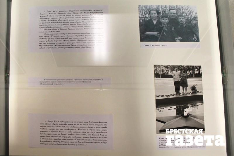 Встретились и Николай Федорович и Ирина Павловна Кюнг, чья фотография вдохновила на создание выставки. «…Войдя в дом, едва удержался на ногах, к нему в объятия бросилась сама Ирина. Первые несколько минут ни он, ни она не могли говорить, оба просто кричали в голос так, что сбежались соседи и вместе с ними горько плакали, слушая то, что рассказывали Николай и Ирина друг другу, торопясь и сбиваясь», — рассказывал участник обороны Брестской крепости в книге «Не сломленные судьбой…»