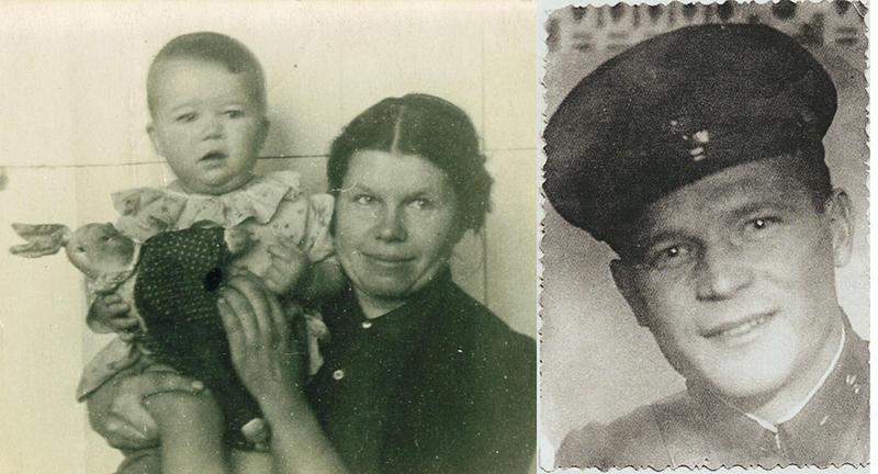 Слева: Валентина Александровна Кокорева (Четверухина) с дочерью Людмилой, город Луга, 1945 год. Справа: Николай Петрович Кокорев, город Витебск, 1939 год. Фото предоставлено ГУ «Мемориальный комплекс «Брестская крепость-герой»