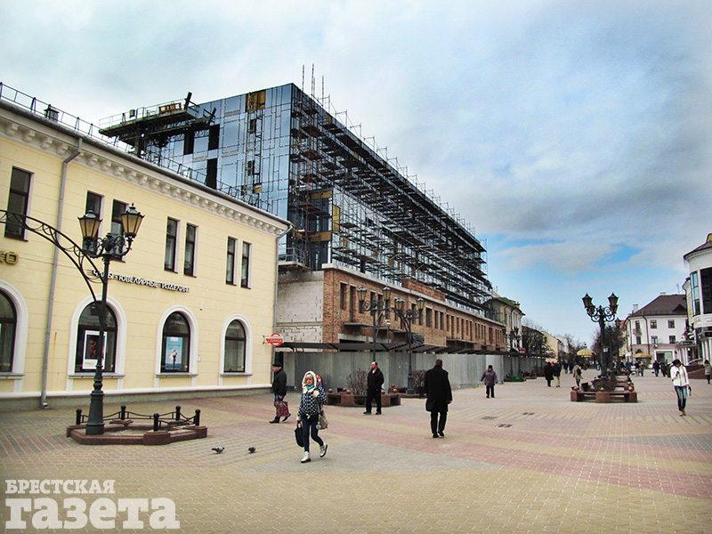 Многие брестчане помнят, что вначале шла речь о том, что старые здания будут сохранены и реконструированы. От них оставили только фасады, но затем эти постройки исторической части Бреста были снесены полностью.